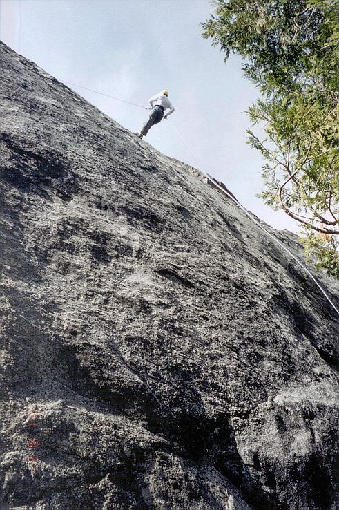 Kim rapping down. The 160-foot rope didn't reach, so we used two ropes.