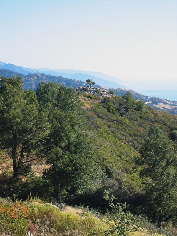 The little outcropping of marble with a lone, stunted oak tree provides the best views from Manuel Peak's summit ridge.