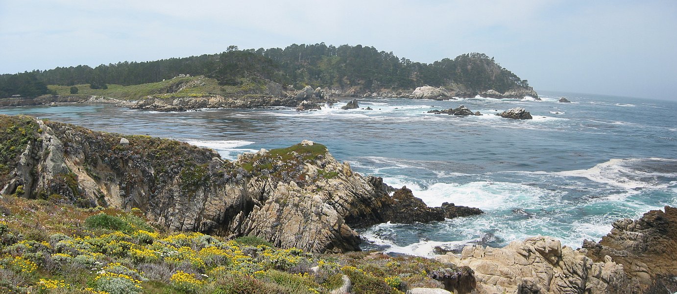 Panoramic view of Whalers Cove (Whaling Shack/Museum on far left) from Granite Point.
