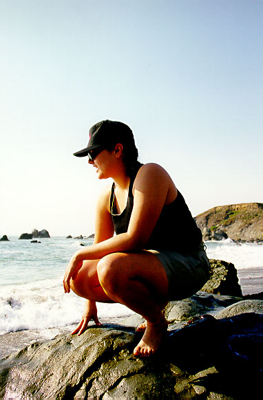Kim on rock at Shell Beach.