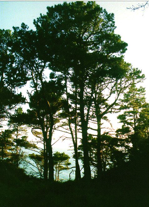 Trees and ocean at sunset from Salt Point SP.
