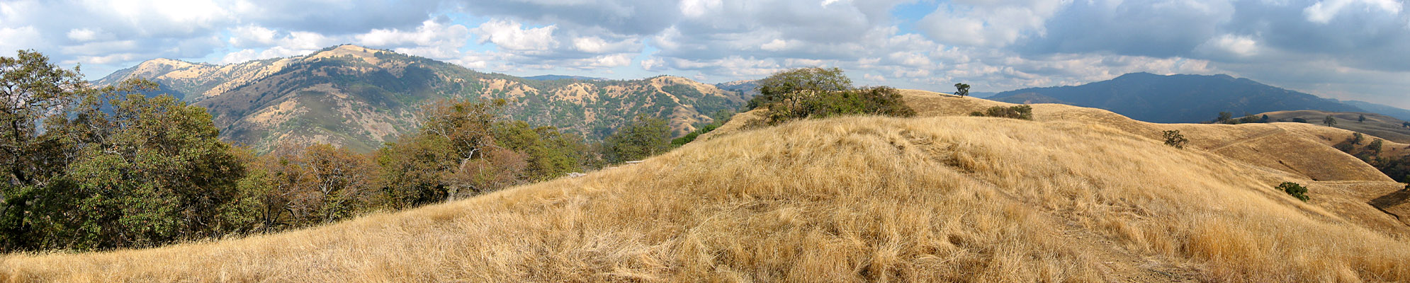 Panoramic view to the north from Antler Point. Mount Hamilton, the highest peak in the Bay Area, sits at right.
