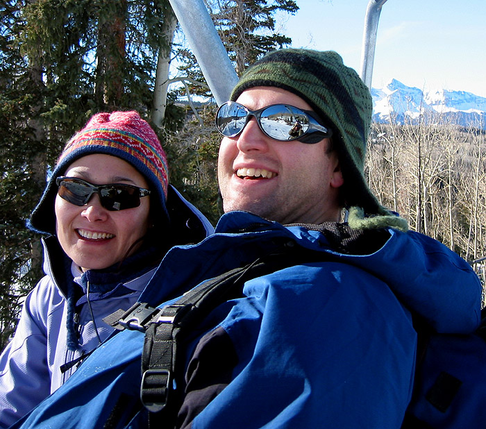 Photo kindly taken by another skier up lift 4(?), Telluride resort, Colorado, December 21, 2003.