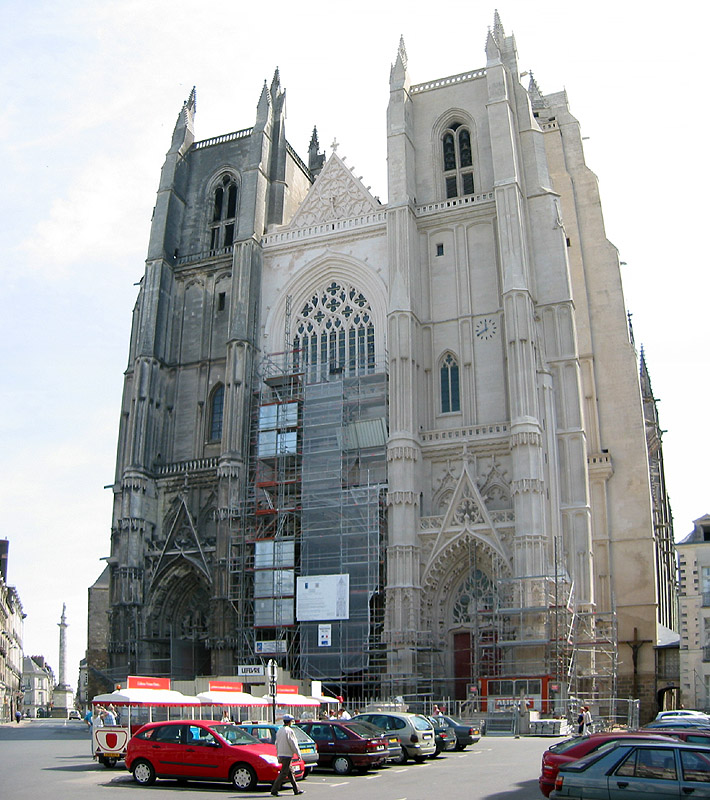 Nantes's main cathedral is being cleaned with lasers. As you can see, they're only about half finished. Will be a great view when they do!