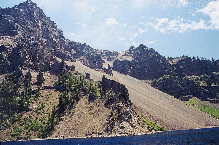 | Garfield Peak, at just above 8000 feet, is perhaps the closest "summit" along the caldera rim to the visitors center. From there, it's roughly a 4-mile round trip hike, with perhaps 1500 feet of elevation gain. This photo was taken from the boat tour. |