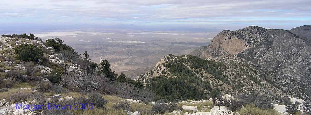 Shumard Peak, west of Guadalupe Peak, is the third highest summit in Texas, after Guadalupe and Bush Mountain.