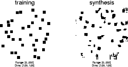 Figure 6 The result is quite good. Many (not all) of the solid black areas in the output look like squares, and the relative density of squares is quite similar. | ![]() |