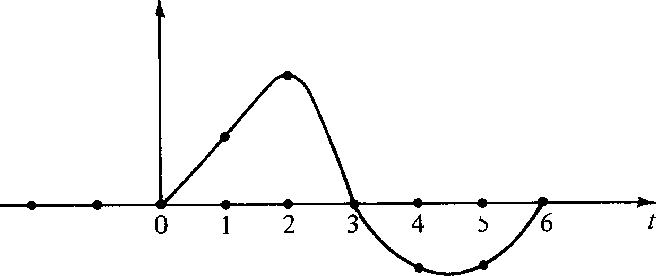 Consider the time function in Figure 1. To analyze such an observed time function in a computer it is necessary to approximate it in some way by a list of numbers. The usual way to do this is to evaluate or observe b(t) at a uniform spacing of points in time. For this example, such a digital approximation to the continuous function could be denoted by the vector