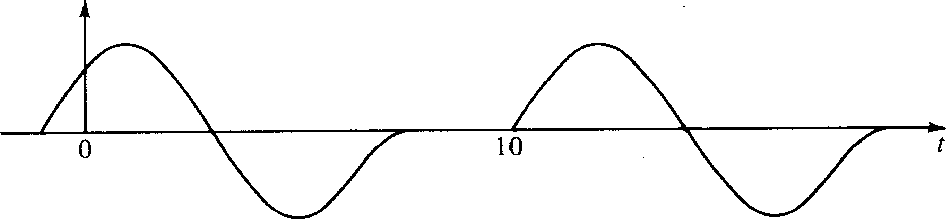 Another value of the delay operator is that it may be used to build up more complicated time functions from simpler ones. Suppose b(t) represents the acoustic pressure function or the seismogram observed after a distant explosion. Then b(t) is called the impulse response. If another explosion occurs at t = 10 time units after the first, we expect the pressure function y(t) depicted in Figure 3.