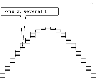 Figure 1 A typical hyperbola crossing a typical mesh. Notice that the curve is represented by multiple time points for each x. | ![]() |