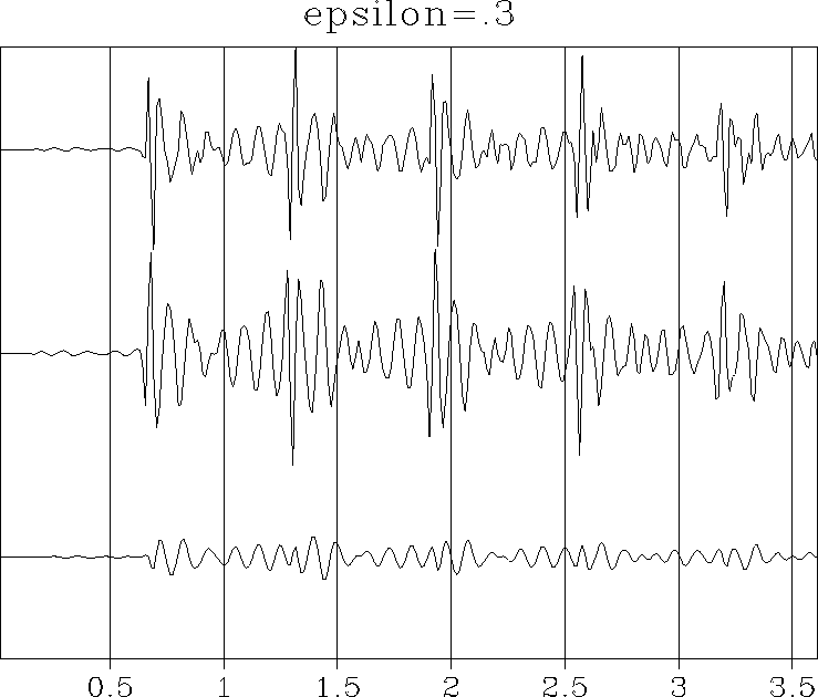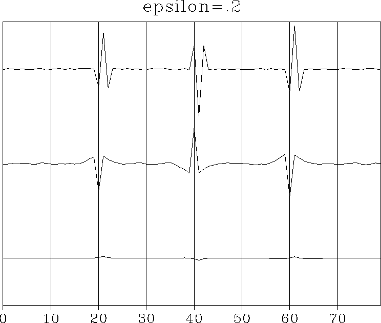 Figure 3 As before, the signals from top to bottom are yt, xt, and nt. Choosing a small | ![]() |
