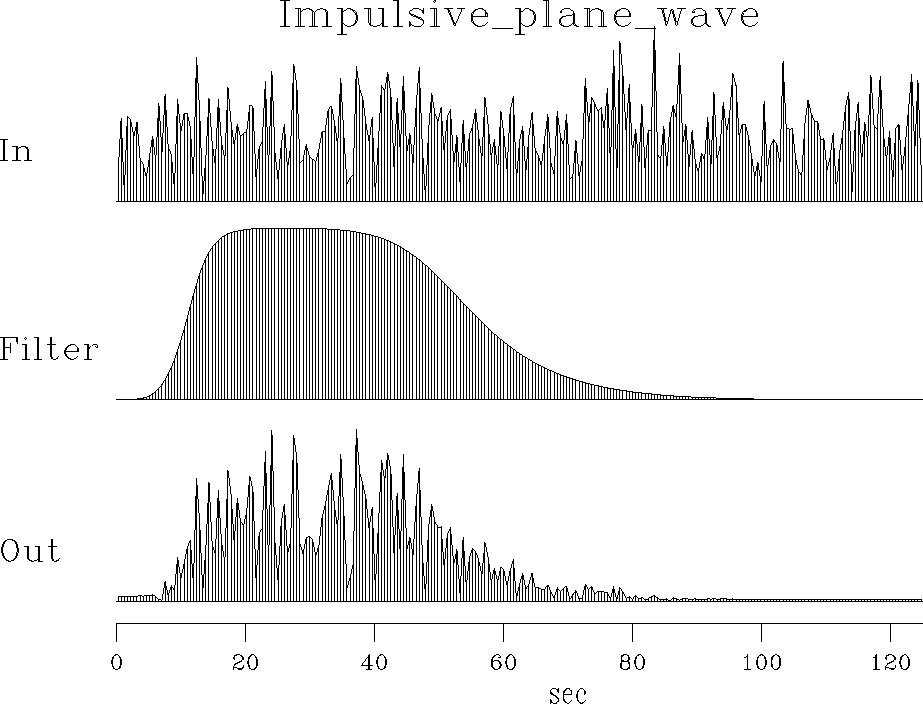Figure 7 Random numbers into a filter. Top is a spectrum of random numbers. Middle is the spectrum of a filter. Bottom is the spectrum of filter output. | ![]() |