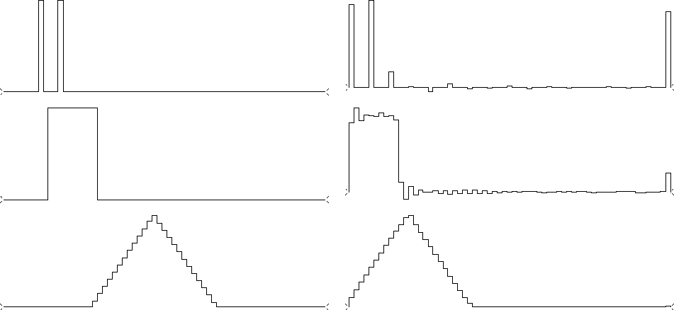 Figure 12 Functions whose spectra contain zeros, along with their minimum-phase equivalents, as computed by discrete Fourier transform. | ![]() |