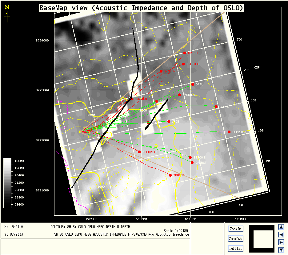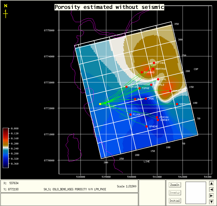 It is reassuring that both methods have good agreement, because while the borehole data are more reliable, it measures only a very small volume of the reservoir; the immediate vicinity of the wells. Only seismic data contains information on the volume away from the logged boreholes.