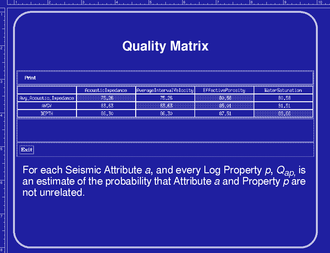 A `Quality Matrix' can be built from various attributes and borehole